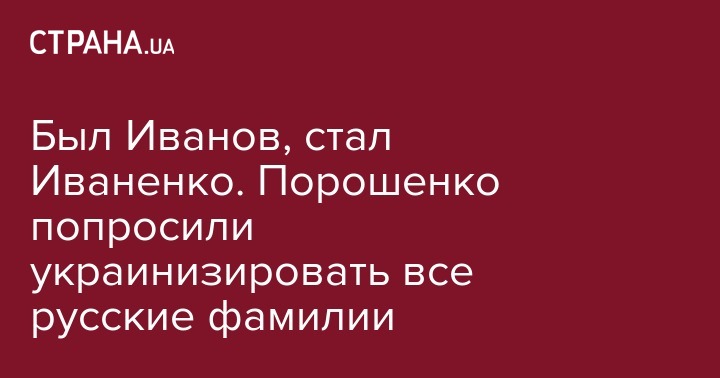 Был Иванов, стал Иваненко. Порошенко попросили украинизировать все русские фамилии