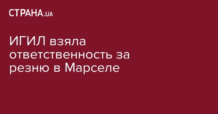 Террористическая группировка ИГИЛ взяла на себя ответственность за резню на вокзале в Марселе, которую устроил вооруженный ножом мужчина. Об этом сообщает Reuters.