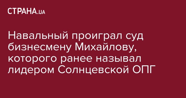 Люблинский суд Москвы удовлетворил иск бизнесмена Сергея Михайлова к оппозиционеру Алексею Навальному в котором требует признать неверной информацию о том, что он является лидером Солнцевской ОПГ. Об этом сообщает ВВС.