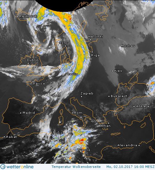 "Идет к нам атмосферный фронт - вон какой красавец сейчас над Западной Европой. А, следовательно, дожди. Завтра - в западных областях, 4 октября на севере и в центре Украины", - рассказала Диденко.