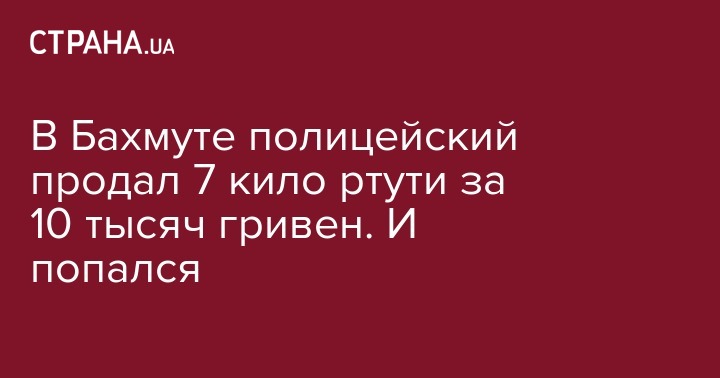 В Донецкой области во время сбыта 7 кг ртути задержан начальник конвоя изолятора временного содержания Бахмутского отдела полиции. Об этом сообщает пресс-служба прокуратуры Донецкой области.