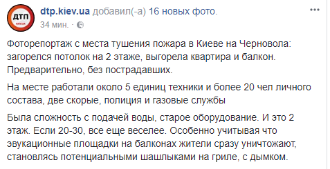 Во вторник, 2 октября, в Киеве произошел пожар на улице Черновола. Об этом сообщает dtp.kiev.ua в Facebook.