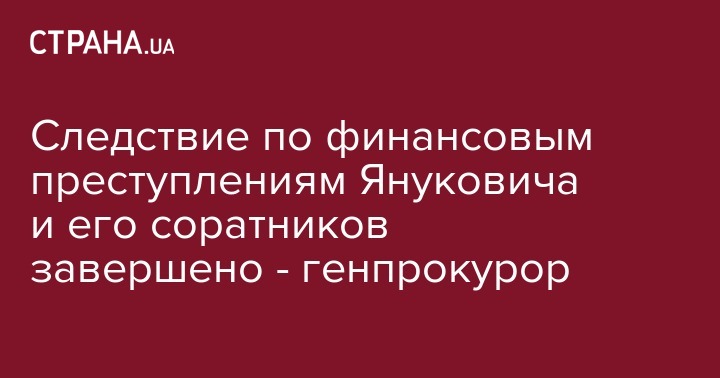 Генпрокурор Юрий Луценко заявил о завершении следствия в отношении фигурантов экономических преступлений экс-президента Виктора Януковича и его ближайшего окружения. Об этом сообщает "Интерфакс Украина".