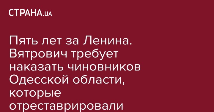 В отношении чиновников, которые отреставрировали в Одесской области памятники революционерам Владимиру Ленину и Михаилу Калинину, должно быть открыто уголовное дело.