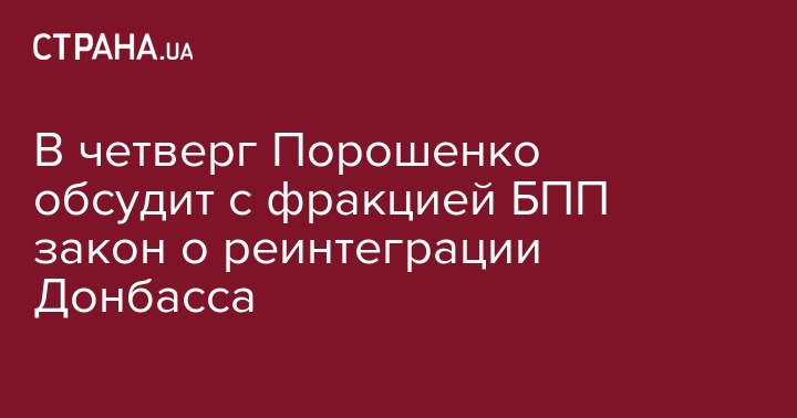 В четверг Порошенко обсудит с фракцией БПП закон о реинтеграции Донбасса