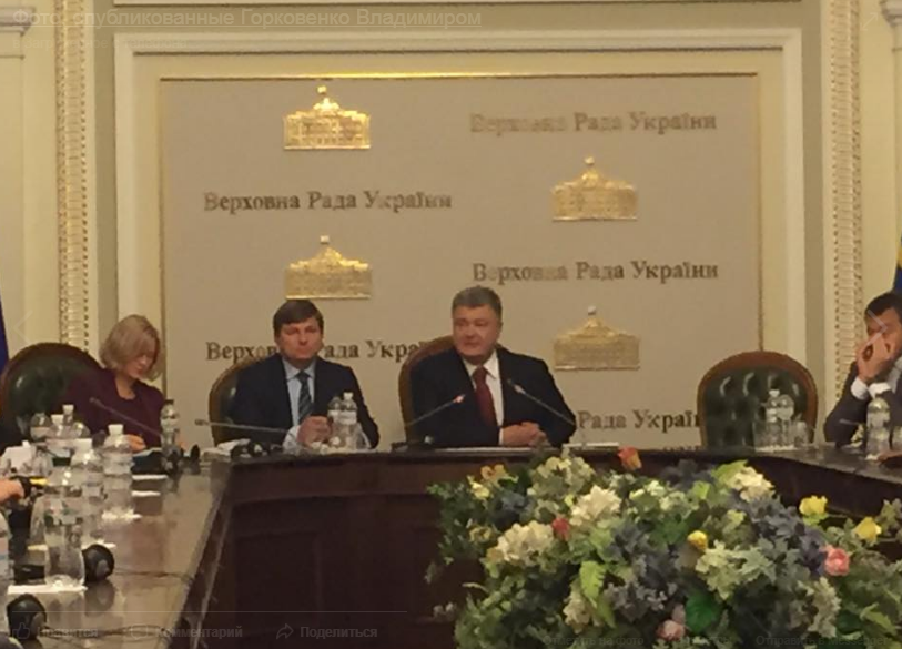 "Петр Порошенко на заседании фракции БПП. Убеждал проголосовать за законопроекты по Донбассу", - написал он.
