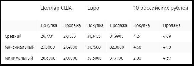 Курсы наличной иностранной валюты: