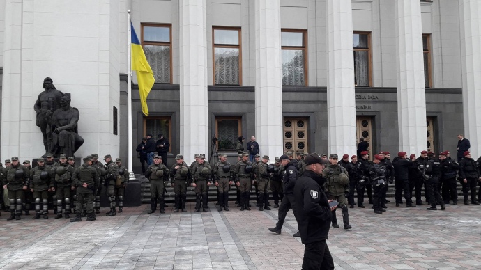 На время голосования по законопроектам о реинтеграции Донбасса, охрану Верховной Рады усилили дополнительными силами Нацгвардии и полиции. Об этом сообщает корреспондент "УП" с места событий.
