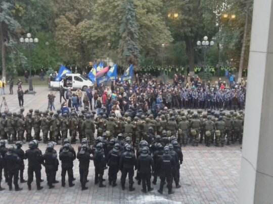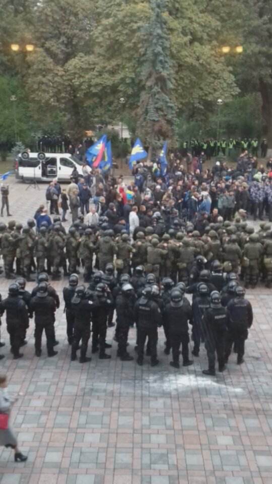 Об этом представитель "Нацкорпуса" сообщил и силовикам, которые стояли в оцеплении перед парламентом. После этого силовики окружили националистов, находящихся на площади перед Радой, взяв их в кольцо.