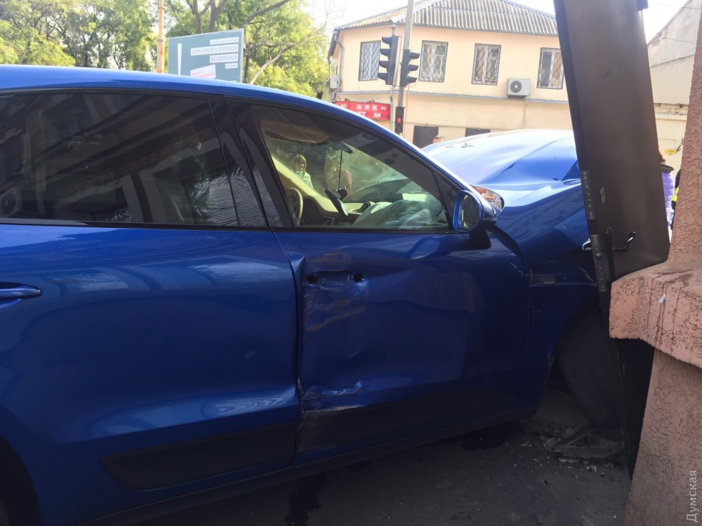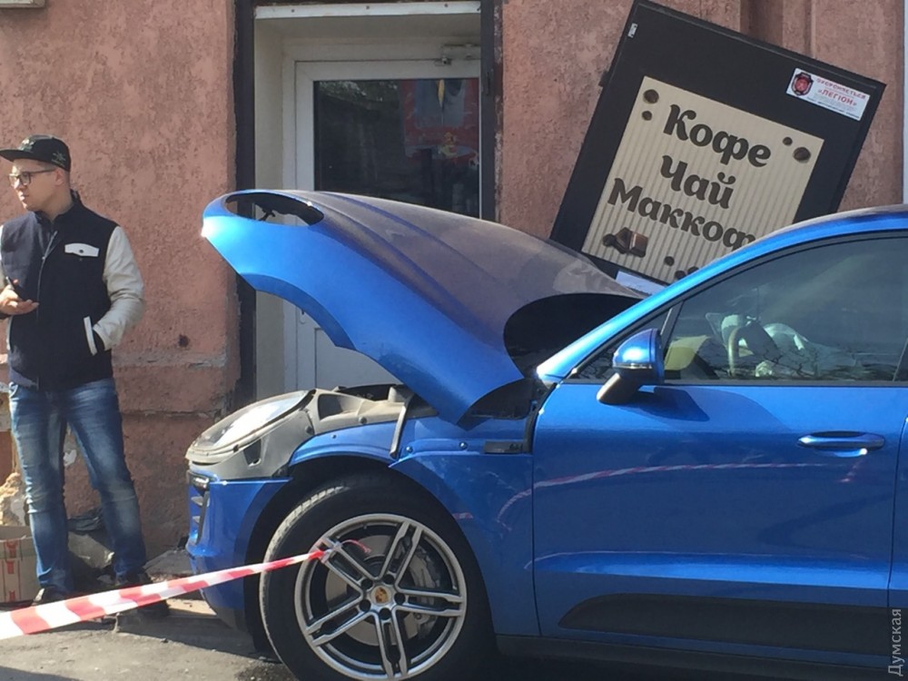 Как утверждают очевидцы, автоледи на "Порш Макан" с киевскими номерами зацепила "Дэу Ланос" и врезалась в стену продуктового магазина.