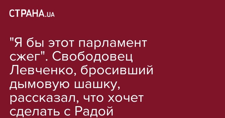 Нардеп Юрий Левченко из "Свободы", бросивший сегодня в парламенте дымовую шашку, заявил, что хотел бы сжечь Верховную Раду.