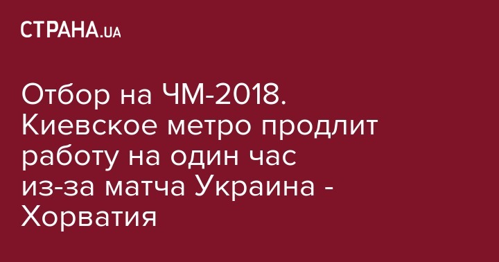 Киевский метрополитен сегодня, 9 октября, продлит работу на час из-за проведения отборочного матча ЧМ-2018 между национальными сборными Украины и Хорватии. Об этом сообщает пресс-служба столичной подземки.