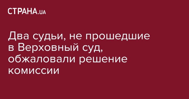 В Верховный суд Украины обратились два кандидата, которые обжаловали решение Высшей квалификационной комиссии судей относительно непрохождения их в новый Верховный суд. Об этом сообщает УНН.