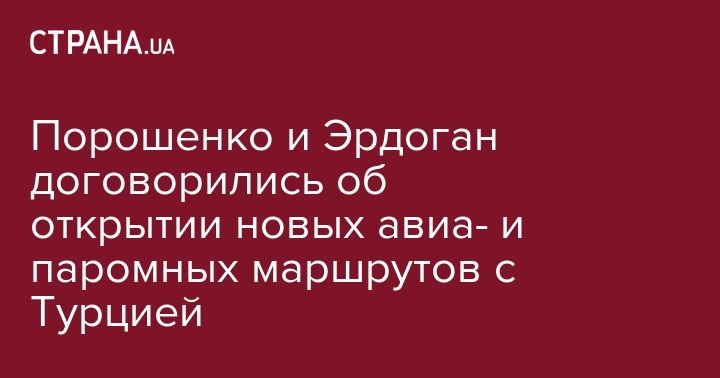 "Весьма перспективным выглядит развитие и надлежащее использование транзитного потенциала Украины и Турции. Будут открываться новые маршруты авиа-и паромного сообщения между нашими странами", - отметил Порошенко.