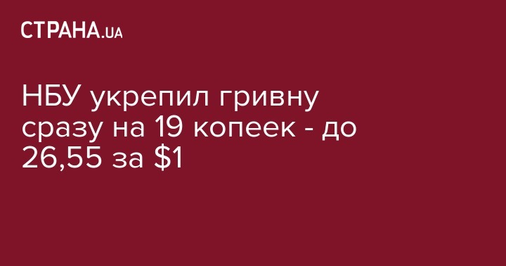 НБУ укрепил гривну сразу на 19 копеек - до 26,55 за $1