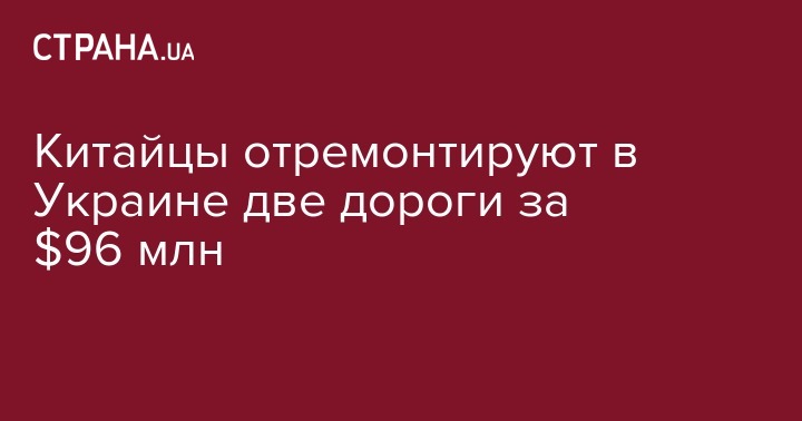 Компания из Китая Xinjiang Communications Construction Group Co., LTD займется ремонтом двух украинских дорог за $95,8 млн. Соответствующие контракты подписали "Укравтодор" и Xinjiang Communications Construction Group Co., пишет пресс-служба ведомства.