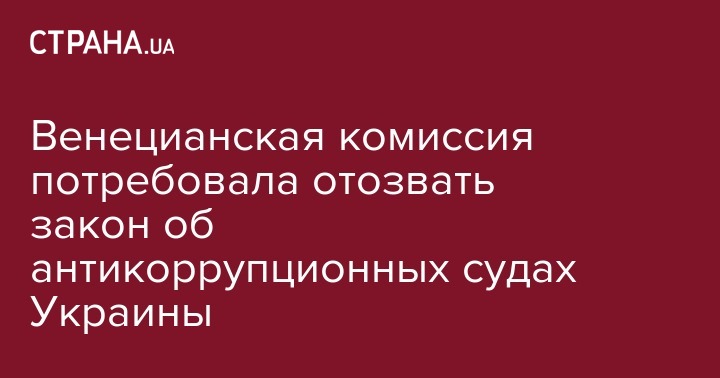 Согласно заключению, которое обнародовано на сайте Венецианской комиссии, законопроект об антикоррупционных судах № 6011, который сейчас находится на рассмотрении в парламенте, должен быть отозван. Вместо него комиссия предлагает президенту Украины Петру Порошенко внести в Верховную Раду соответствующий законопроект от своего имени, который будет отвечать Конституции Украины и стандартам Совета Европы.