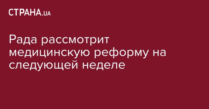 Верховная Рада на следующей пленарной неделе, 17-20 октября, рассмотрит во втором чтении медицинскую реформу, несмотря на ожидания министра Супрун, что ее примут не позднее ближайшего четверга.