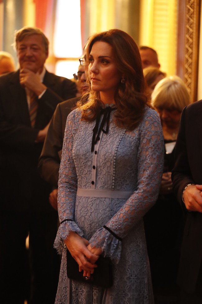 На мероприятие королевская семья пригласила гостей, которые трудятся в сфере психического здоровья в Великобритании. Перед собравшимися жена принца Уильяма появилась в нежно-голубом кружевном платье от Temperley London.