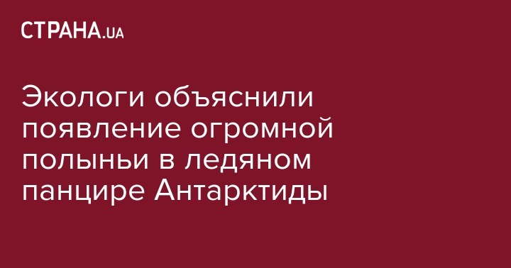 Ученые Торонтского университета в Канаде заявили, что в морской части ледяного щита Антарктиды, на западе континента, возникла полынья площадью около 90 тысяч квадратных километров. Такого рода полыньи обычно образуются в прибрежных регионах Антарктиды, однако в этом случае она появилась в сотнях километрах от кромки льда, и ученые пока не могут назвать причины этого явления.