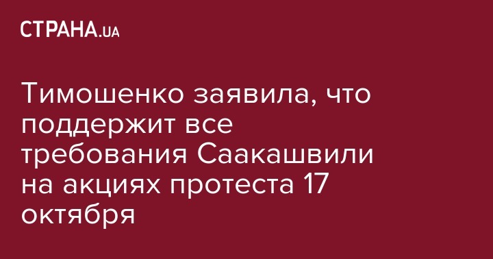 Тимошенко заявила, что поддержит все требования Саакашвили на акциях протеста 17 октября