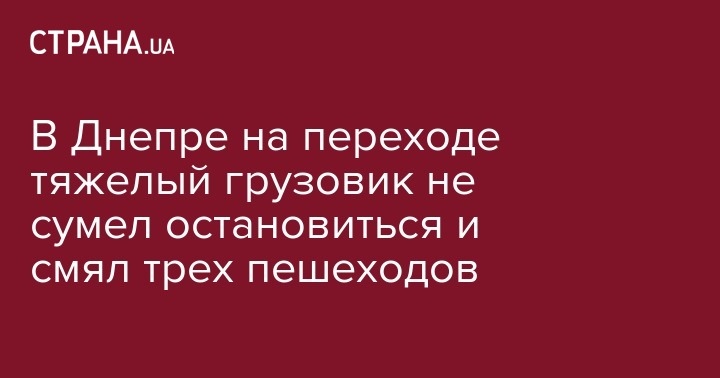 Трех человек на пешеходном переходе в Днепре сбил грузовик, на месте погибла 20-летняя девушка. Еще двое пострадавших парней попали в больницу.