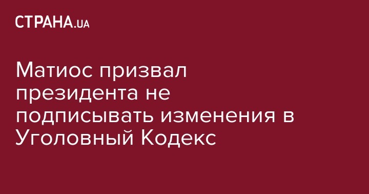 Матиос призвал президента не подписывать изменения в Уголовный Кодекс