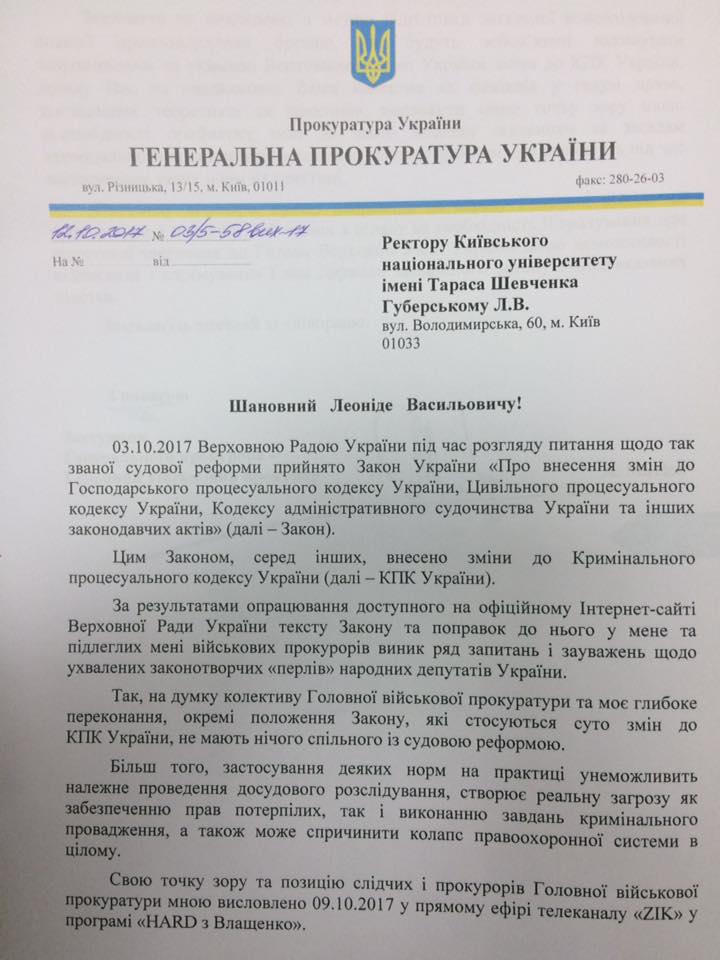 "Изменения в УПК подписывать нельзя! Я обратился ко всем руководителям правоохранительных органов и руководителей юридических ВУЗов и Академии правовых наук поддержать мою позицию. Не оставляю надежды, что председатель ВР Украины Парубий одумается и не будет придумывать "ноу-хау" в части "осуществление редакционного и технико-юридической доработки", а фактически переписывание отдельных норм Закона. Если так сделают - это составит состав преступления", - написал главный прокурор страны.