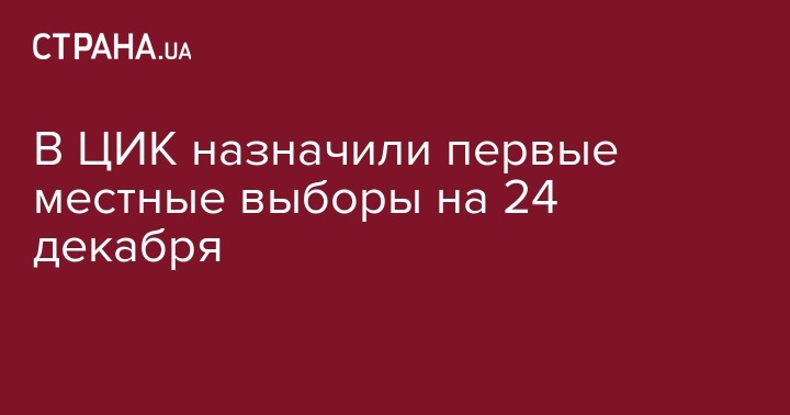 Центральная избирательная комиссия назначила первые местные выборы в 49 объединенных территориальных громадах на 24 декабря. Об этом сообщает пресс-служба ЦИК.