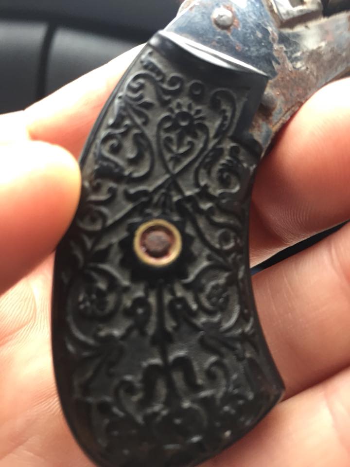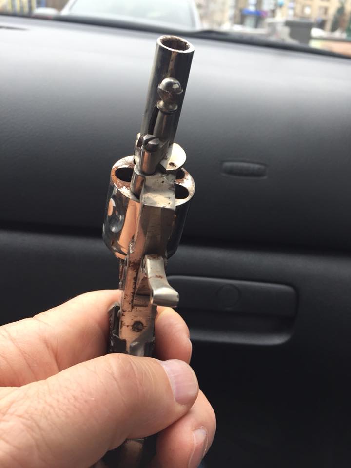 "Трудно сейчас сказать какая историческая ценность этой находки. Это револьвер, думаю, женский, которому не менее 150 лет. Шестизарядный, в барабане одной пули нет (это тема для будущих исследований, в кого стреляла женщина в те годы). Все признаки, что изготовлен в Европе: черная пластмасса с декоративными узорами вмонтирована в металлический корпус, а на корпусе выбиты цифру 7 и буквы RN и что-то вроде короны", - отметил Апостол.