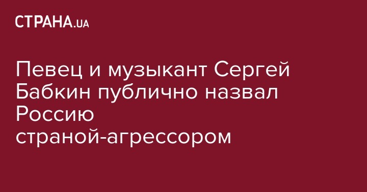 Украинский музыкант Сергей Бабкин публично признал Крым территорией, оккупированной Россией, а Российскую Федерацию  - страной-агрессором.
