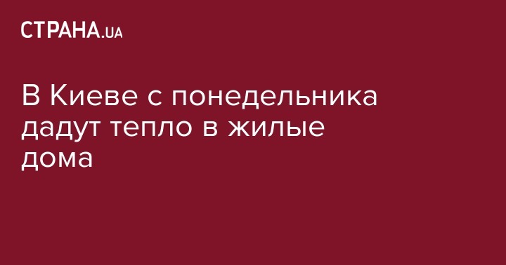 В Киеве с понедельника дадут тепло в жилые дома