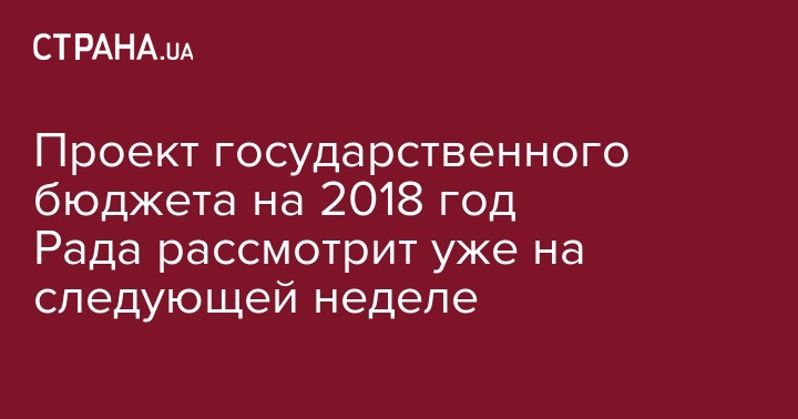 Проект государственного бюджета на 2018 год депутаты Верховной Рады Украины рассмотрят  в четверг 19 октября.