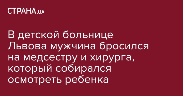 "В приемный покой пришли гражданин с женщиной и с ребенком. Их в приемном покое осматривал врач, у ребенка была рвота. После осмотра вызвали хирурга, чтобы еще он осмотрел ребенка. Но тут внезапно этот гражданин выскочил в коридор и начал крушить регистратуру приемного отделения, разбил стекло. Стекло ранило медсестру, которая сидела, и на этот крик из соседнего бокса выбежал хирург. Этот мужчина ударил хирурга. В результате сестра с сотрясением мозга и глубокой раной лба госпитализирована, и также госпитализирован хирург, в результате ударов мужчины он получил перелом затылочной кости и вокругорбитальную гематому и сотрясение мозга легкой степени", - сообщил главный врач Львовской городской детской клинической больницы Дмитрий Квит.
