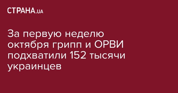 За первую неделю октября (2-8 октября) гриппом и ОРВИ в Украине заболели 152 тыс. человек, что на 8,6% меньше аналогичного периода в прошлом эпидсезоне.