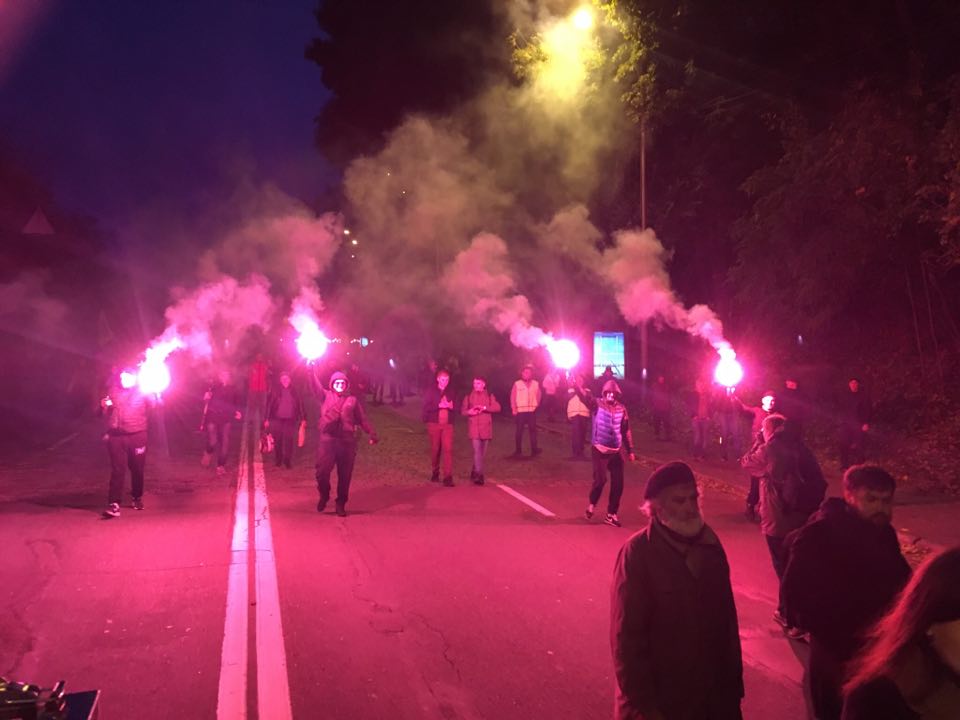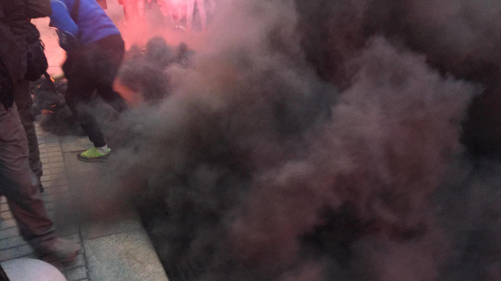 18:25 Участники марша зажгли файеры, которые задымили все вокруг.