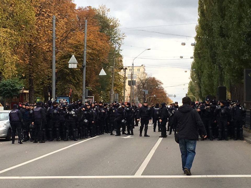 13:30 Около парка Шевченко уже собирается полиция в полной экипировке. Там уже стоят десятки бойцов. К ним подтягиваются другие.