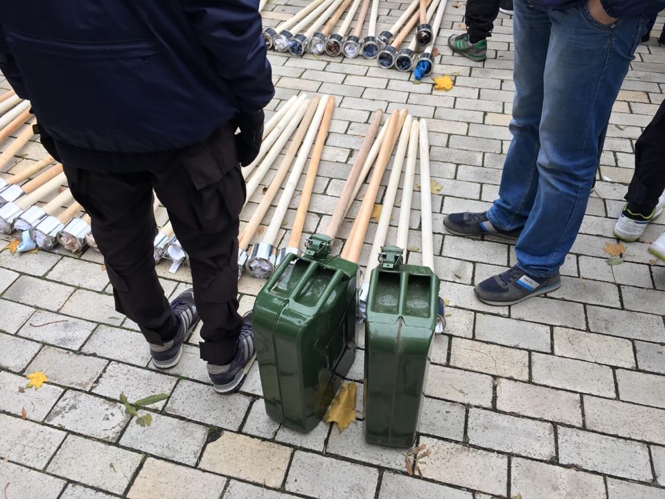 16:22  По рукам "молодежного крыла" пошли факелы. Пока еще без огня. Организаторы раздают бутылки с зажигательной смесью - для заправки факелов.