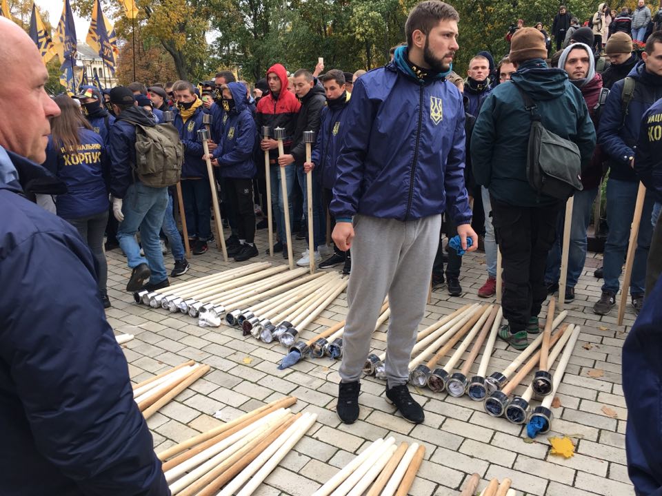 14:10  В Украинском доме - самый центр Киева, пять минут пешком до Майдана - идет съезд "Национального корпуса". Это политическая надстройка полка "Азов", известного своими право-радикальными взглядами.