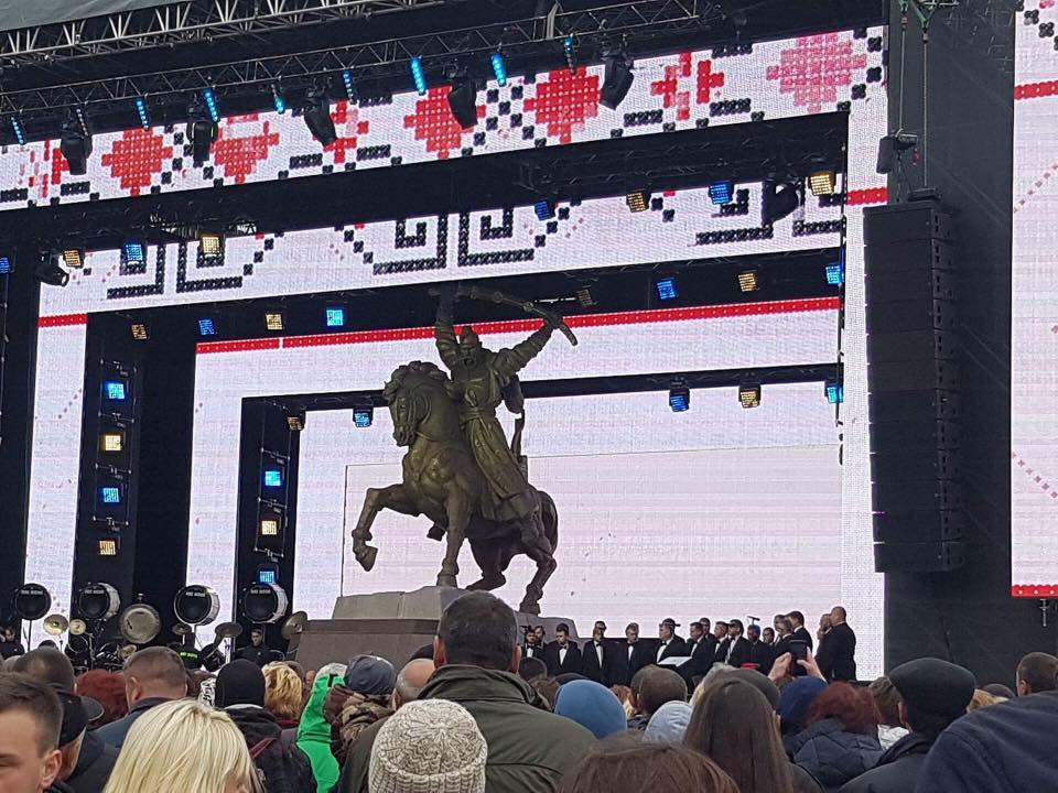 19:14  Концерт на Контрактовой начался. Начали с молитвы батальона "Азов". В первых словах текста - упоминание Кавказа.