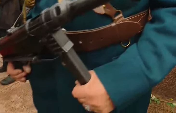 16:27  У одного из участников митинга в руках "Шмайссер". Говорит, что макет. "Это было самое надежное оружие - безотказное, и патронов много".