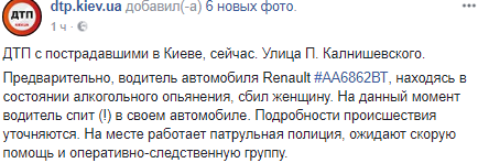 Предварительно, водитель автомобиля Renault, находясь в состоянии алкогольного опьянения, сбил женщину.