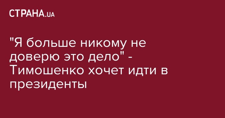 "Я больше никому не доверю это дело" - Тимошенко хочет идти в президенты