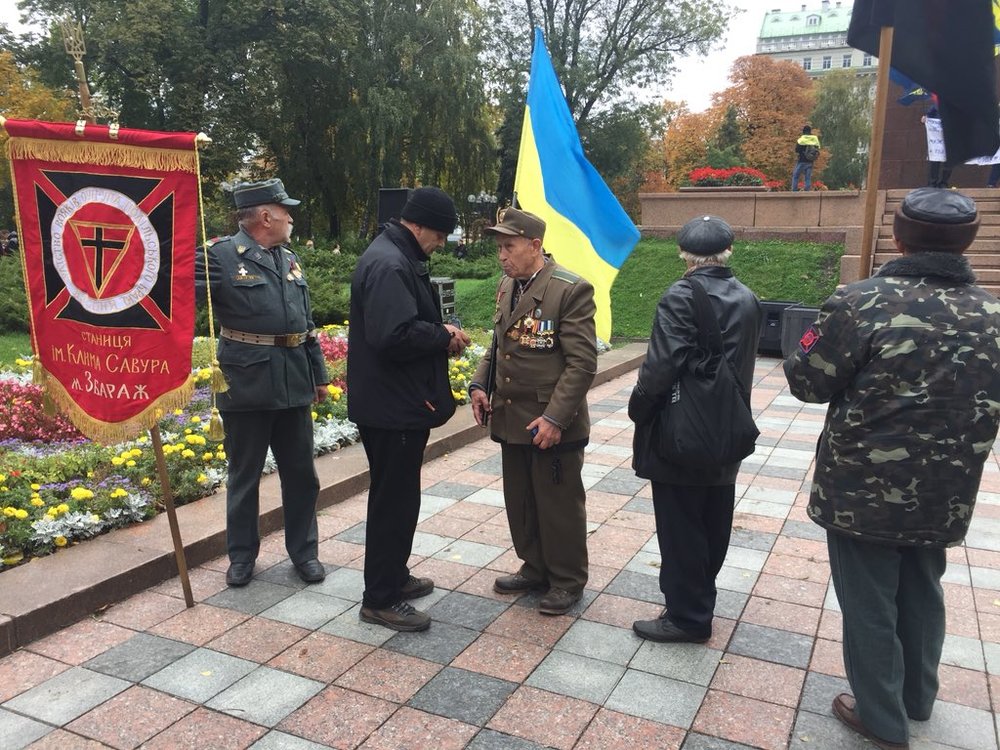 Организаторы марша собрались возле памятника Тарасу Шевченко, чтобы запланированным шествием отметить 75-летие создания Украинской Повстанческой Армии.