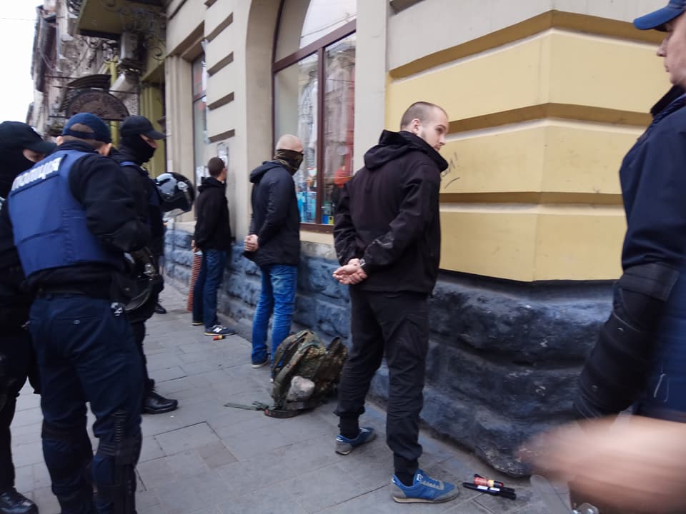 "Правоохранители локализовали подозрительных граждан и изъяли у них газовые баллончики, кастеты, ножи и другие предметы, которые могут быть использованы для нанесения телесных повреждений. Сейчас полицейские устанавливают личности граждан и проводят первоочередные мероприятия", - говорится в сообщении Нацполиции.
