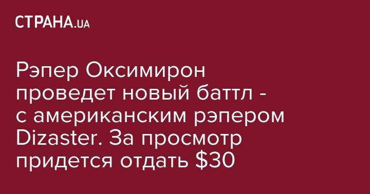 Рэпер Оксимирон проведет новый баттл - с американским рэпером Dizaster. За просмотр придется отдать $30