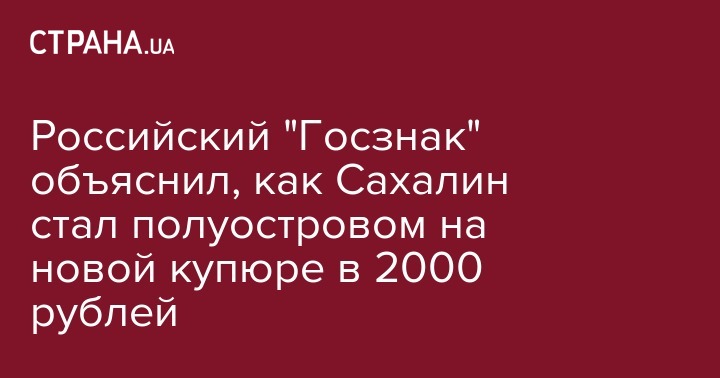 В компании "Гознак", которая отвечает за выпуск новой российской купюры номиналом 2000 рублей, прокомментировали замечания россиян о том, что остров Сахалин якобы "слился" с континентальной частью РФ и "превратился" в полуостров. Об этом сообщается на сайте "Госзнака".