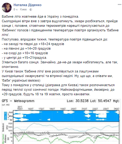 Напомним, первое "бабье лето" в Украине прошло с 30 сентября по 4 октября.