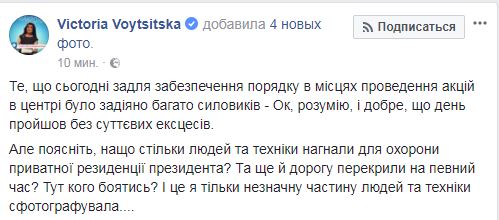 7:40  "Весь квартал оцеплен щитами. Проход на площадь Конституции только через рамки. Здание парламента окружено двойной цепью нацгвардии и полиции", - пишет у себя в Facebook нардеп Мустафа Найем.