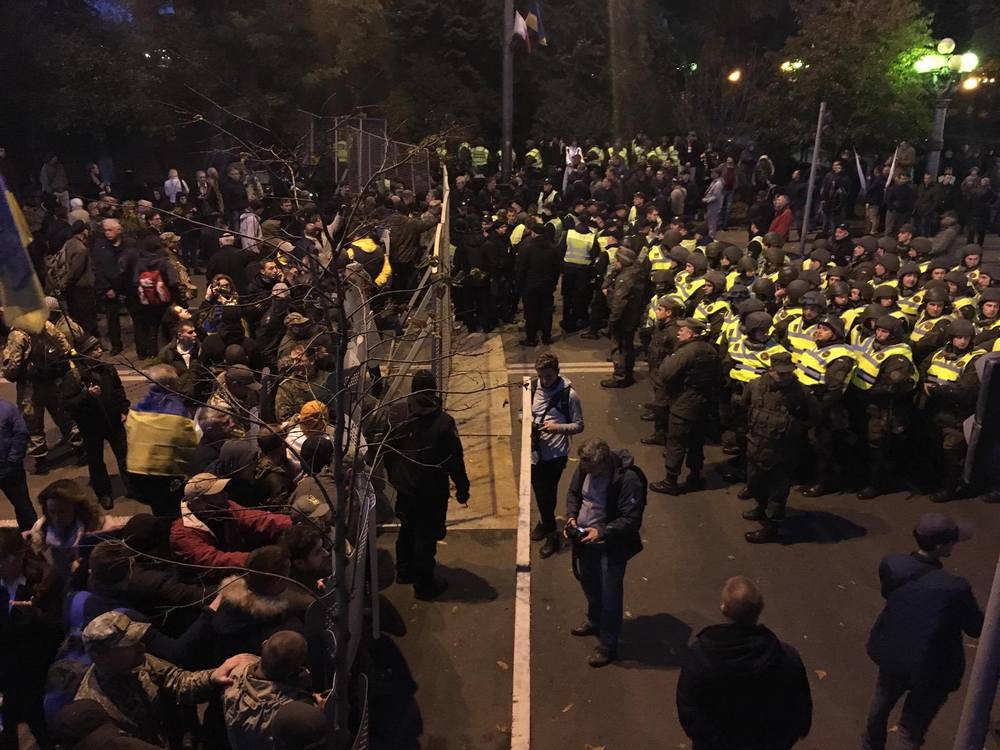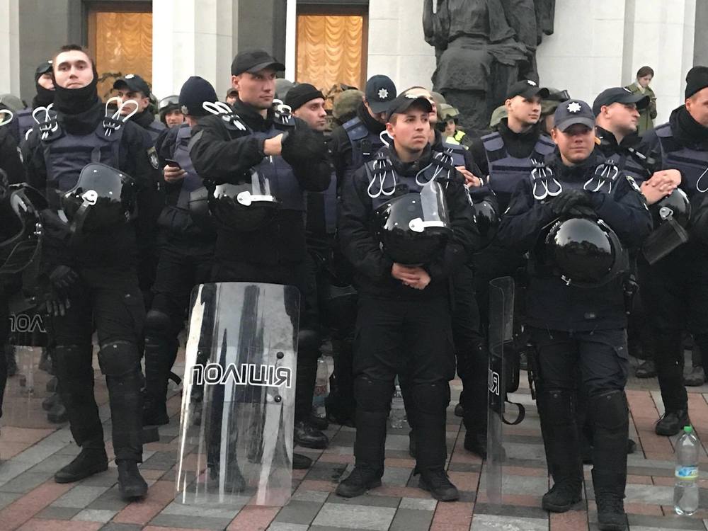 18:01  Со стороны улицы Шелковичной перекрыли входы в зону протеста. Полиция и Нацгвардия уплотнили ряды. К Раде никого не пропускают.